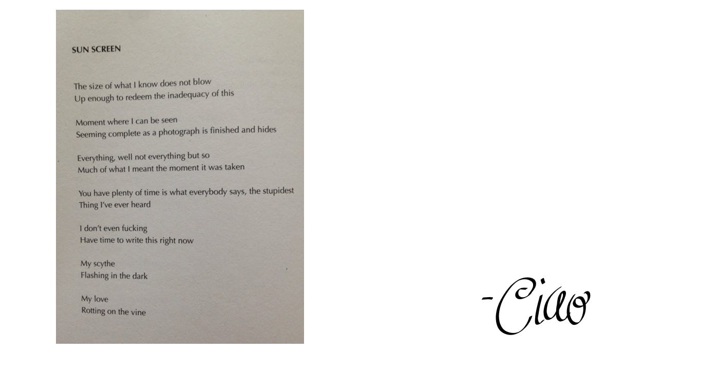 I have made a major mistake in not providing credit where credit is due…. The title of this newsletter is not of my own making, but from an Ariana Reines poem SUN SCREEN, 2008. The poem feels relevant now more than ever. Ariana also does readings called Birth Rights, and I can attest they are very useful and moving.